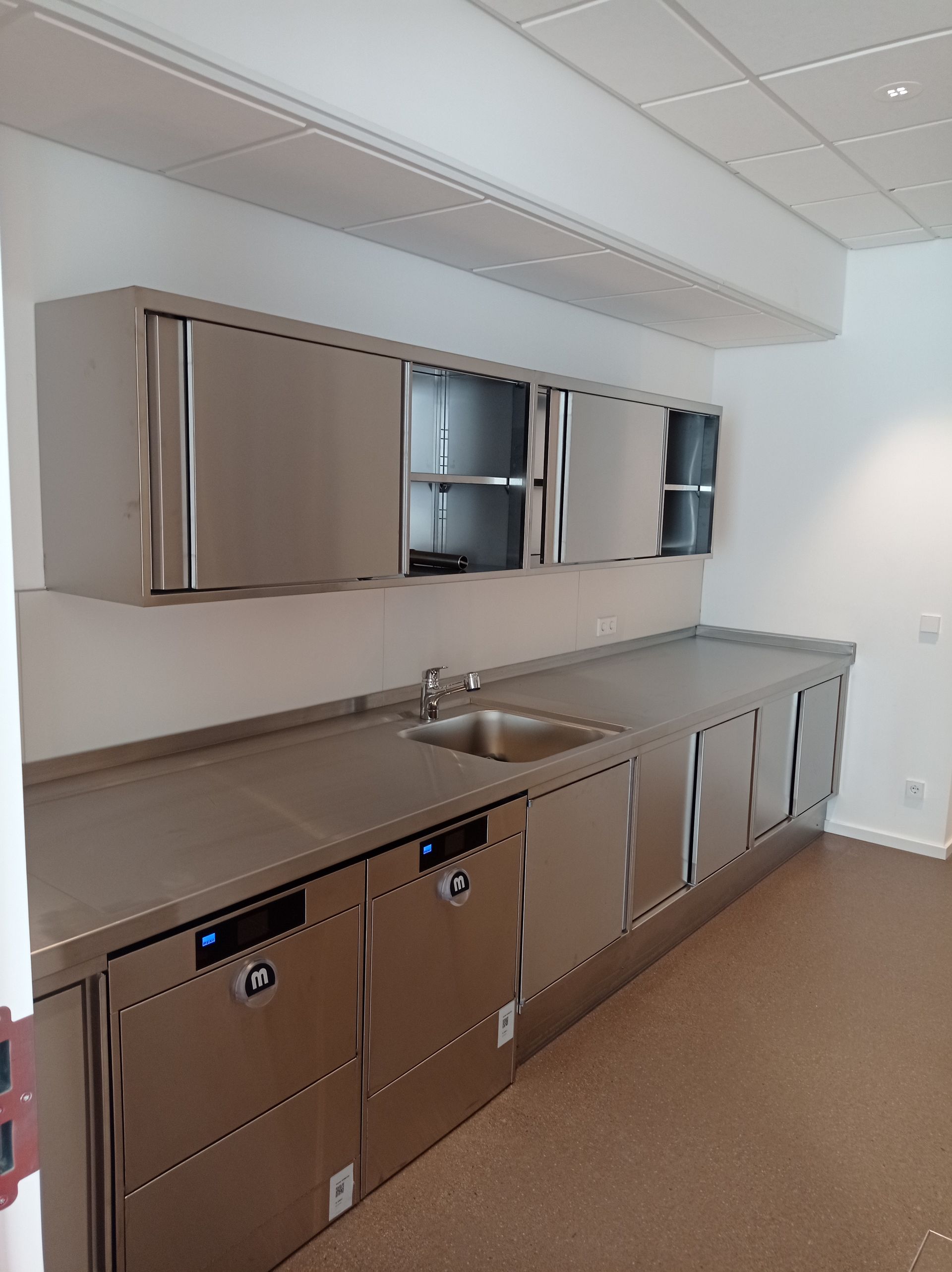 - Unterschränke mit Schiebetüren und Schubladen sowie Flügeltüre
